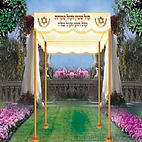 It consists of a cloth or sheet, sometimes a tallit, stretched or supported over four poles, or sometimes manually held up by attendants to the ceremony.
